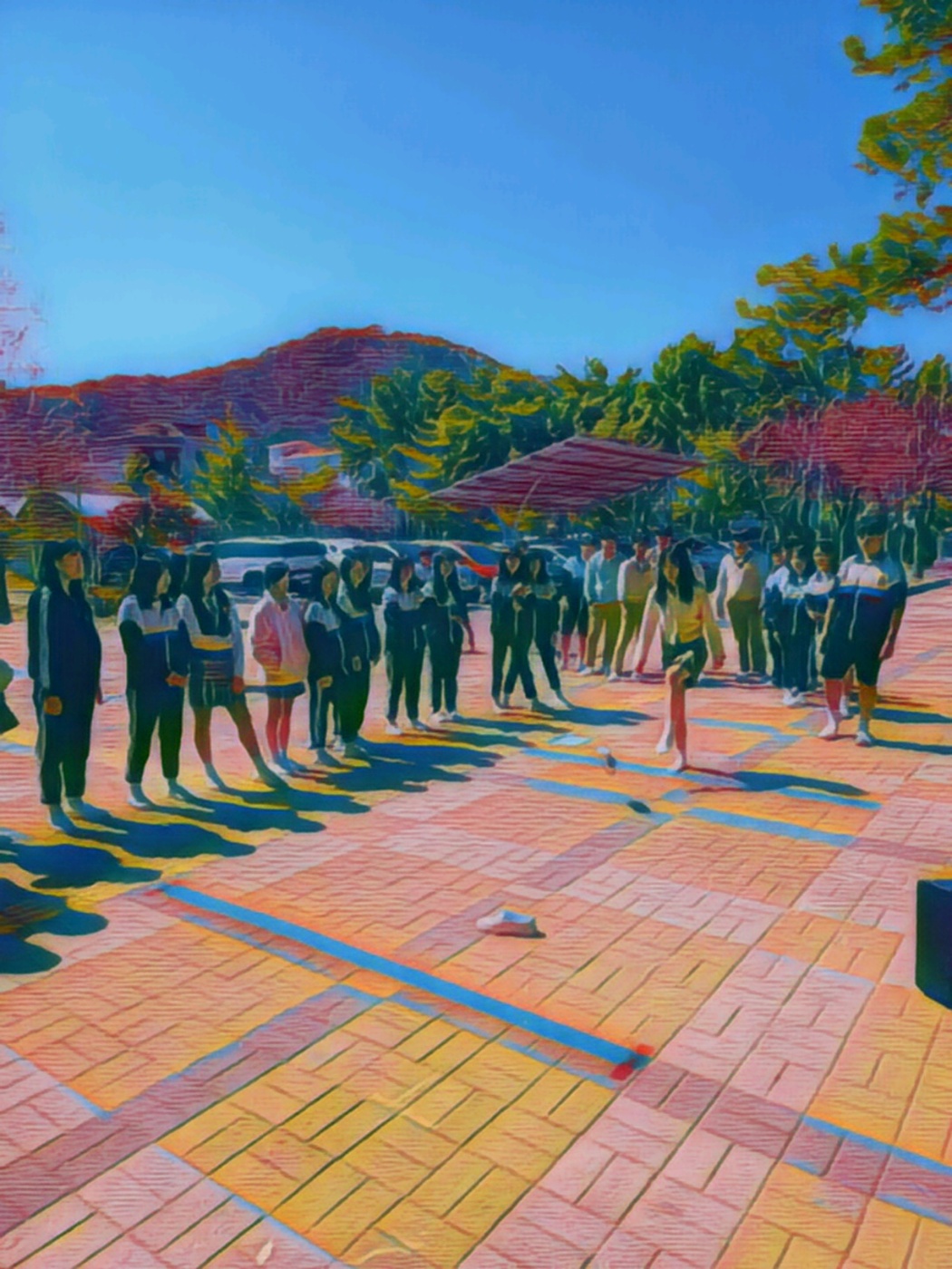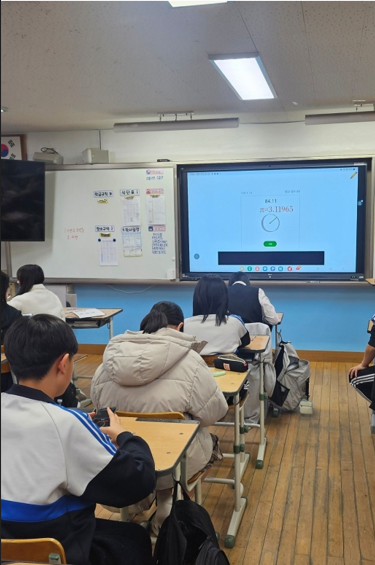 1. 점심시간을 활용하여 출발선에서 3.14m 선에 맞춰 실내화 던지기