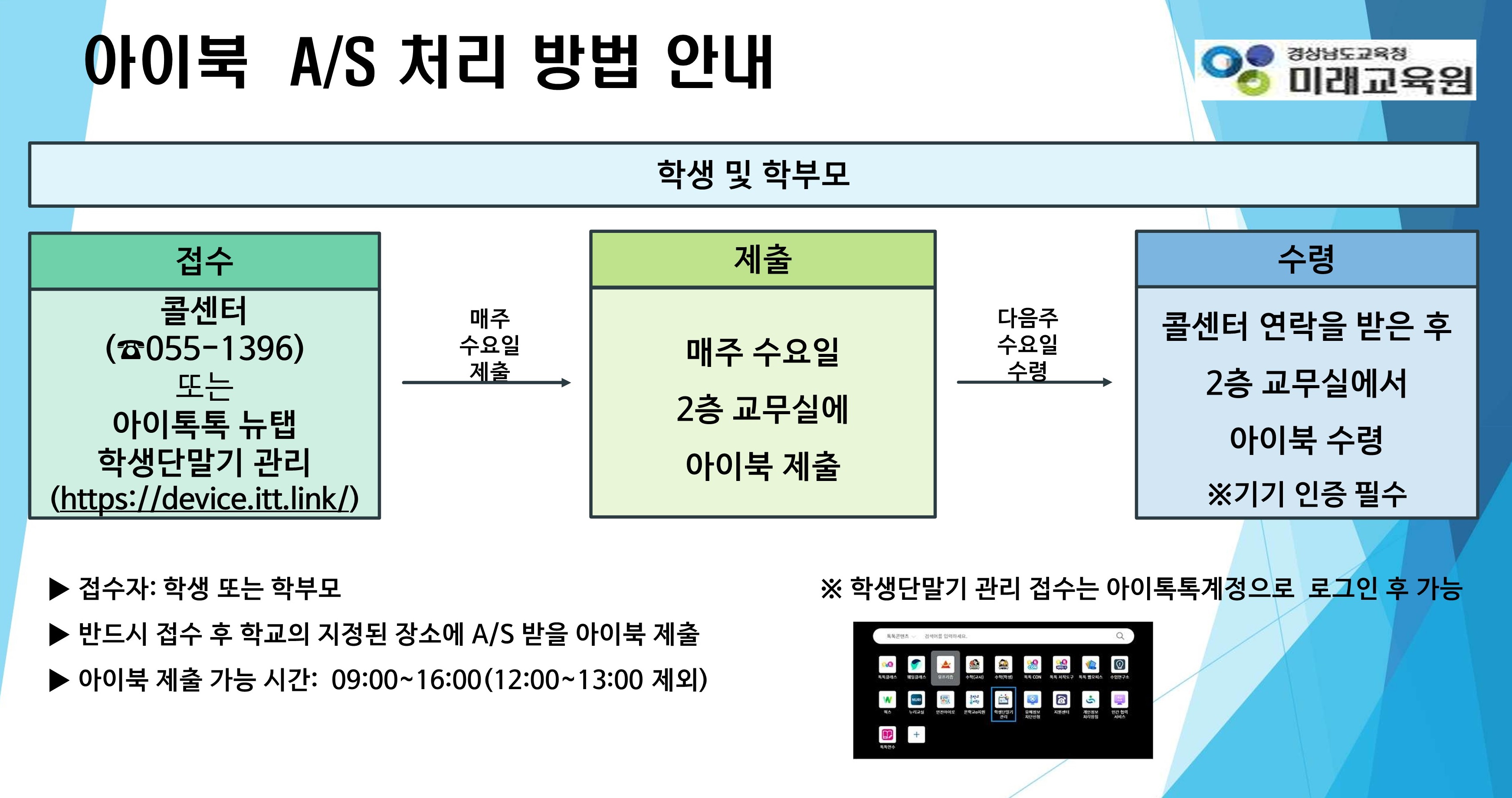 방학 중 아이북 A/S 처리 방법 안내